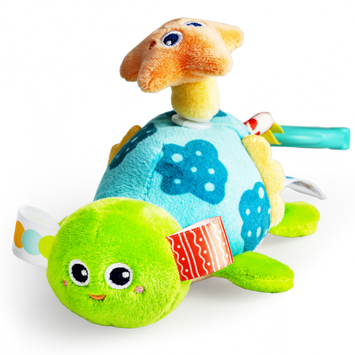 Ten mały wesołek zapewni najmłodszym radosną zabawę, dzwoniąc przy tym uroczo! Staś posiada na grzbiecie uśmiechniętą rozgwiazdę, która zakręci się, gdy tylko pociągniesz za kółko z krabikiem przy zawieszce lub za, przyczepionego wcześniej, żółwika.